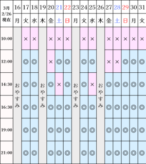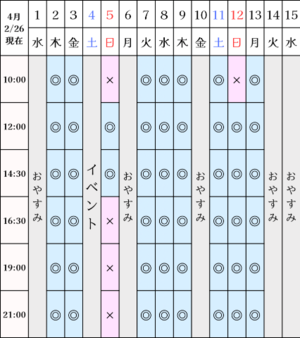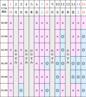 さて、空き枠カレンダー