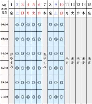 5月GWまでの予定です