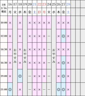?空き状況(2/16現在)