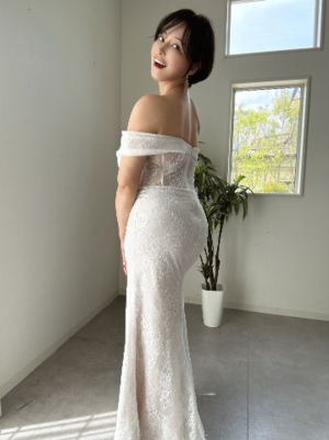白ドレスで草むら上に寝転ぶよう指示され