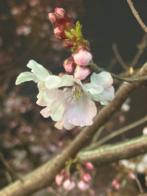 ソメイヨシノよりも1週間ほど早く咲く桜で大寒桜というのがあるみたいだけど、画像見るともっとピンクっぽいし?