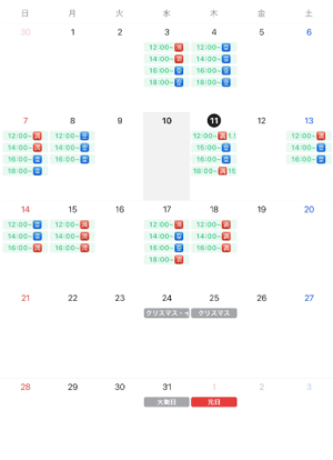 ・ 記載されている時間が最後にお受けできるお時間です。