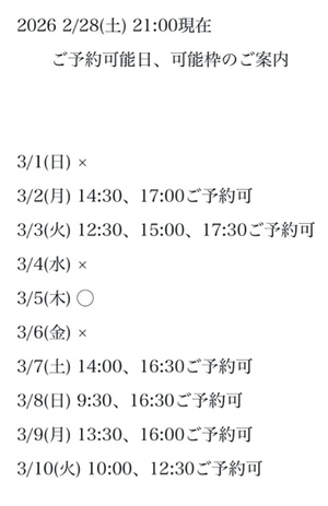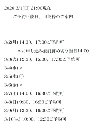 3枠6時間以上です♪(要ご相談)