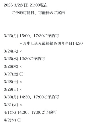 完全ご予約にて