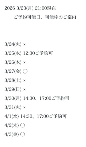 3枠6時間以上です♪(要ご相談)