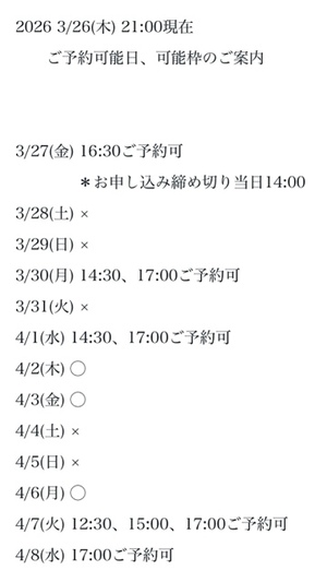 完全ご予約にて