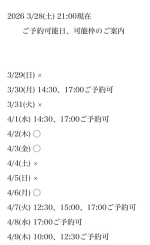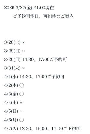 完全ご予約にて