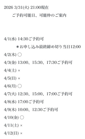 完全ご予約にて