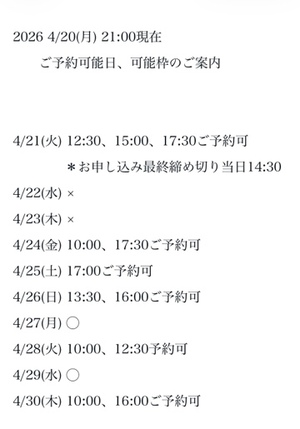 完全ご予約にて