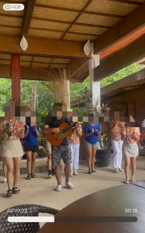 チェックインしてすぐに10人くらいのホテルスタッフがお出迎えをしてくれて、歌とダンスを披露。