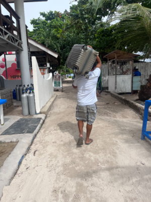 シーズンじゃないから船出すのも3人分の7500ペソ。次の日は他にもお客さんがいたから船代は消えてダイビング2本で7000ペソ。
