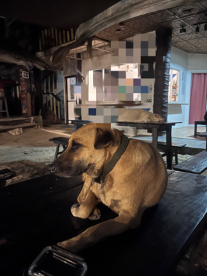 宿のわんこたちがテーブルで寝てて可愛かった?