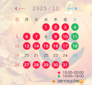 姫予約のみ予定出勤日、受付時間外の