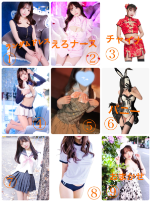 1〜9の中から好きなコスプレ選んで教えてくださいね?