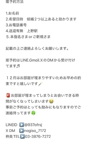 事前のお約束や、ご希望日時お決まりのお兄様は姫予約がおすすめです❤️