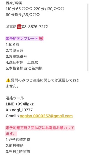 💛姫予約連絡方法💛