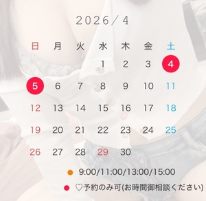 4月赤丸ご案内可能時間4/4 (9:00/11:00/13:00のみご案内)4/5 (9:00のみご案内)
