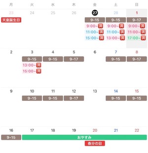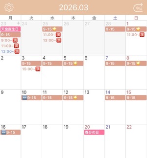 ??今後の出勤予定です??3月後半は旅行に行くのでお休みの予定です?