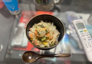 鮭と舞茸と白ネギ入れたお粥なんだけど、