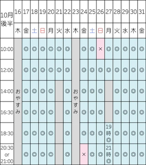 最新の案内状況➕10月シフトです