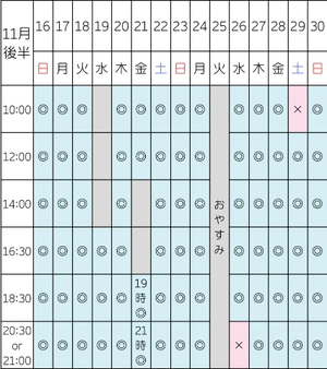 明日空き¦10:00/12:00/14:00/16:00/20:30