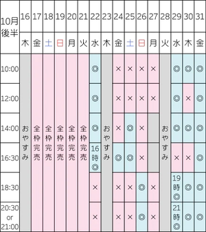 本日空き¦10:00/12:00/14:00/16:00