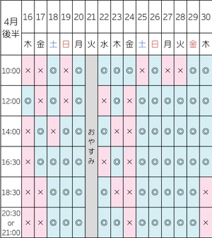 最短の空き枠はこちらです