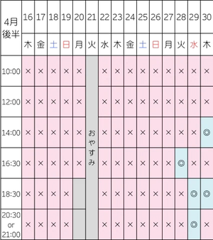 【10:00/12:00/14:00】が埋まりやすいため