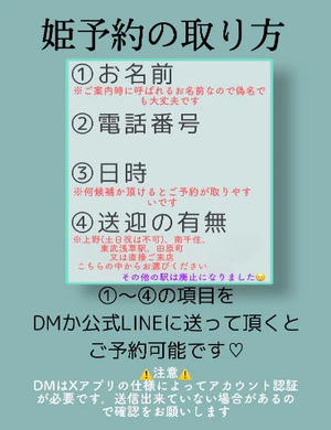 私の連絡先(DMでも可)に↓の情報を送って頂けると直接ご予約をお取りすることが出来ます☺️