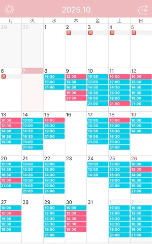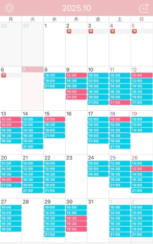 【最新のご案内可能枠】※ピンク色がです