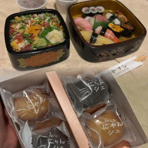 お鮨とお菓子の差し入れもいただいて