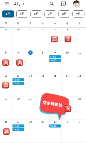 ⬇️直近の空き枠⬇️