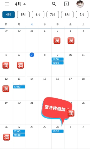 ⬇️直近の空き枠⬇️4月残り空き枠