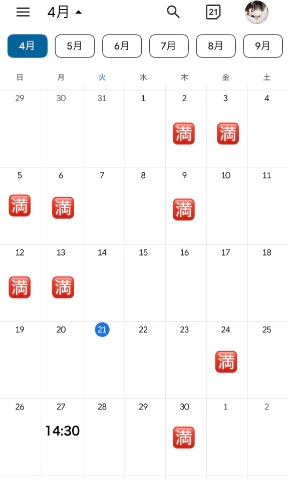 ⬇️直近の空き枠⬇️4月残り空き枠27日(月)14:30〜5月の予定