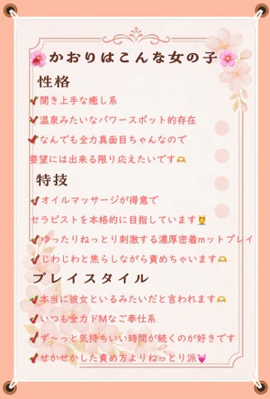 ....などなど、他にもオイルマッサージや濃厚な密着プレイが得意なので、時間をかけた丁寧な触り方が気持ちよかったと言われます