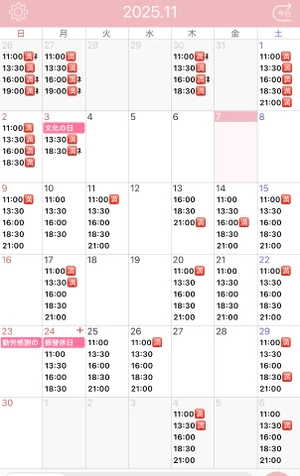 11月最新予約状況🌸(インフル気をつけてね)