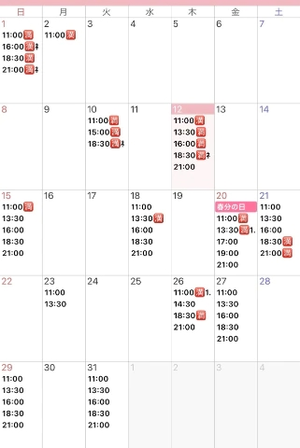 3月の予定が少し変更になったので、お知らせ