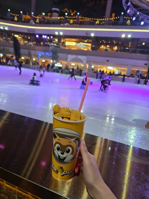 写真のスケート場はロッテワールドっていう遊園地と繋がってて時間帯によってはアイスリンクからパレードとかが見えるの✨