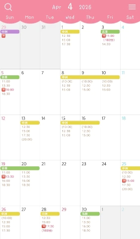 4月の出勤予定が確定しました