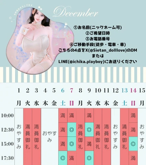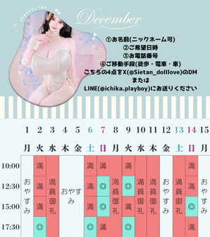 12月のご予約スケジュールを作成しました