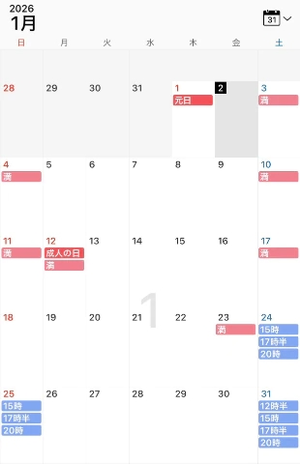 1月の予約状況も載せておきます❄