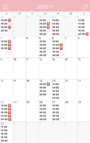 明日は14時/16時半/20時半が