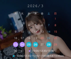 お休みの日も姫予約のみ出れる時間帯もあるので、せまひお問い合わせください。4月