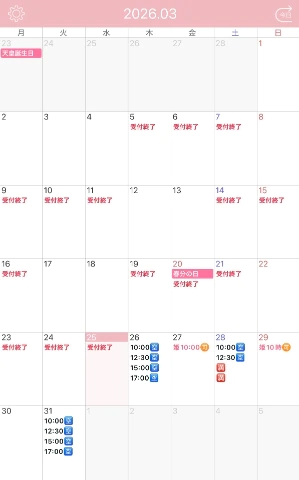 3月出勤日&残りの空き枠