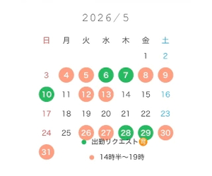 の出勤リクエストは、前日までにリクエストいただけましたら出勤可能な日となっております。