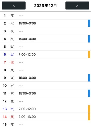 SCHEDULE 出勤情報